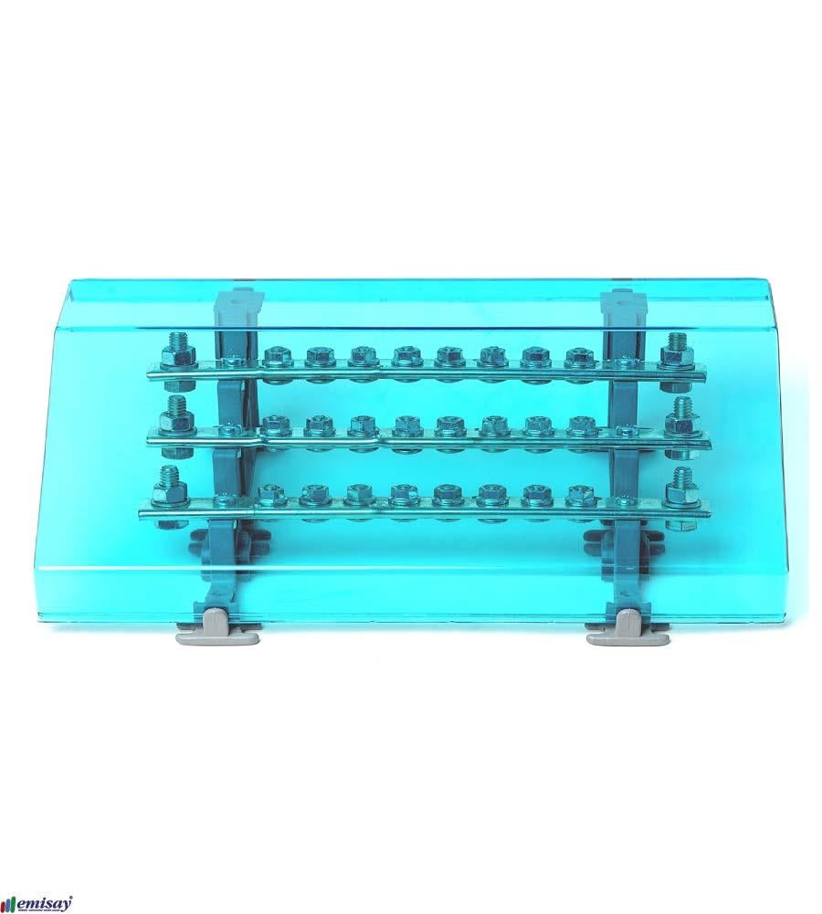 3 KUTUP - 10 DELİKLİ -250A (2/8 SKP, Giriş-Çıkış )KALAYLI BAKIR BARALI DAĞITICI (LBE.3208.255)